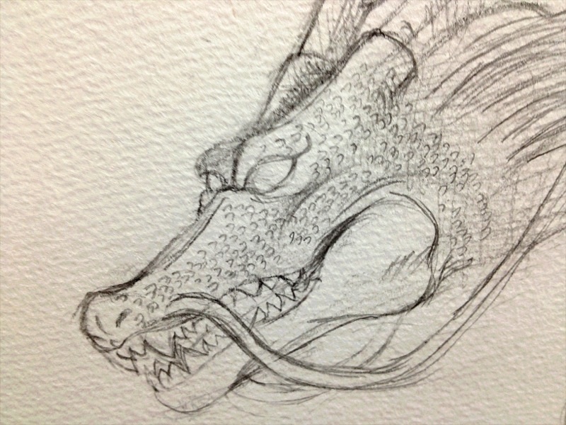 ちなみに、この鉛筆画は「神龍」で、画像検索して見つけたのを模写しましたが、えらく難しかったです。あたしあまり、こういうファンタジーな生き物描かないし(^^;;